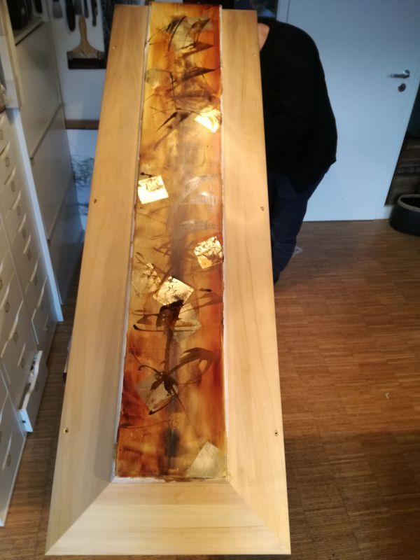 Alles begann mit der Bitte einer Freundin. Im Bestattungsinstitut hatte sie keinen Sarg gefunden, der ihr für ihren kunstinteressierten Freund zu passen schien. Darum bat sie mich um die Deckelgestaltung eines schlichten traditionellen Sarges.